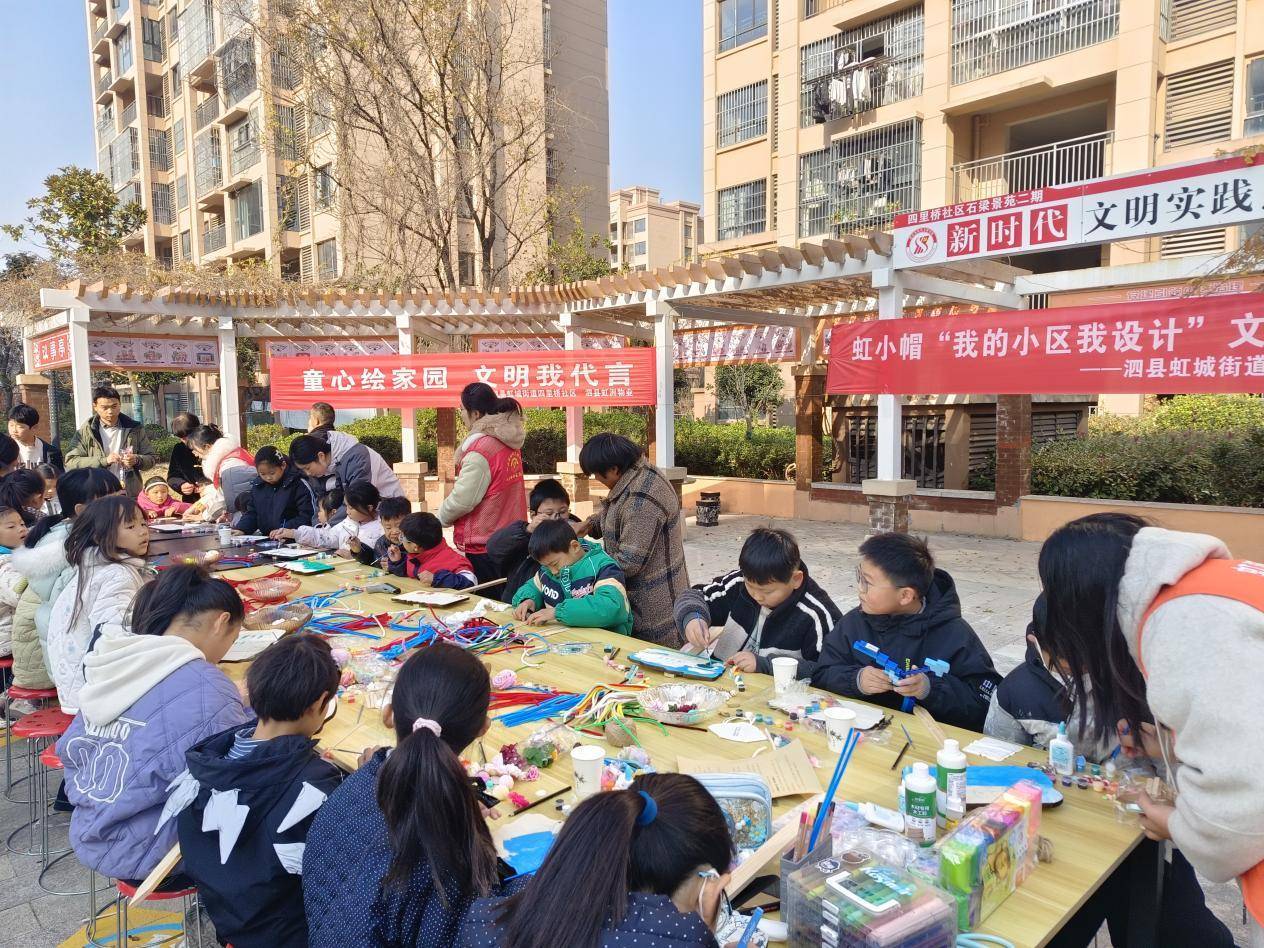 当童真的画笔与文明公约相遇,当废弃的雪糕棒变身为温馨的家园标识,一场富有巧思与温情的亲子活动,正成为激活社区治理、深化文明创建的生动实践。近日,泗县虹城街道新时代文明实践所联合四里桥社区与虹洲物业,共同举办“虹小帽——我的小区我设计”文明实践活动,邀请小区小业主们亲手绘制文明标语牌、创作特色门牌,以童眼观察社区、以童心构筑文明。