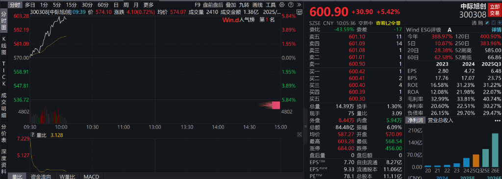 消息面,中际旭创12月8日融资净偿还1.25亿元,融资余额占流通市值比例降至3.03%