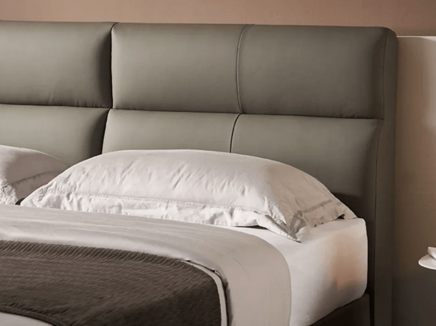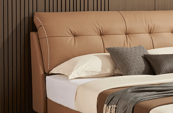 - 亮点:分段式人体工学床头,精准贴合腰背曲线,加厚设计不管追剧还是休憩,都能放松腰背;进口头层黄牛皮细腻有弹性,高回弹海绵+7孔纤维棉双层填充,支撑与柔软兼顾,久靠不塌陷。