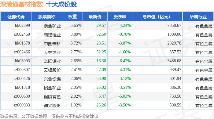 深港通基材(983061)指数十大成份股详情如下: