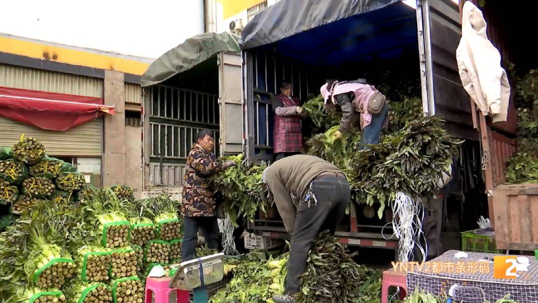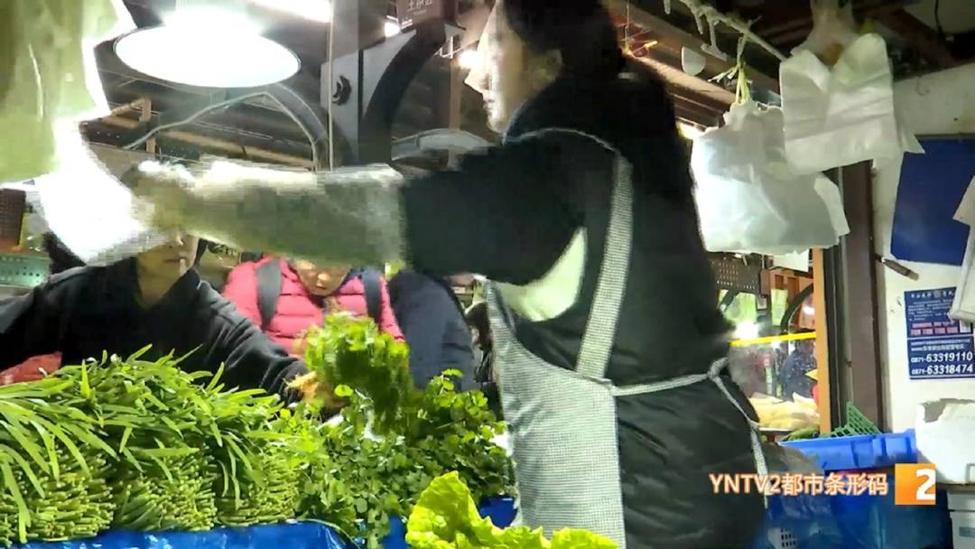 零售商:“现在是十五元一千克,都是昆明本地的,自家种的,因为外省也没有菜,好多菜都批发到外省了。”
