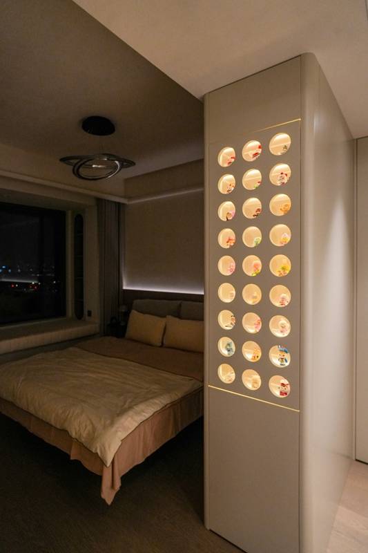 曼海莲全案木作有众多成功的合作案例,比如在上海市松江区万科海上映象一套100平的5口之家的精装改造项目中,曼海莲全案木作以原木奶油风为基调,对空间进行了整体扩张。客厅的入户整排柜子主色调为柔和的浅米色,搭配原木色点缀,中间配置玻璃展示柜,底部嵌入开放格,既实用又整洁;主卧的泡泡马特手办展示柜,圆形镂空,内置灯带,既作为展示区,又巧妙充当空间隔断,精致又温馨。这些案例充分展示了曼海莲全案木作的设计实力和施工水平。