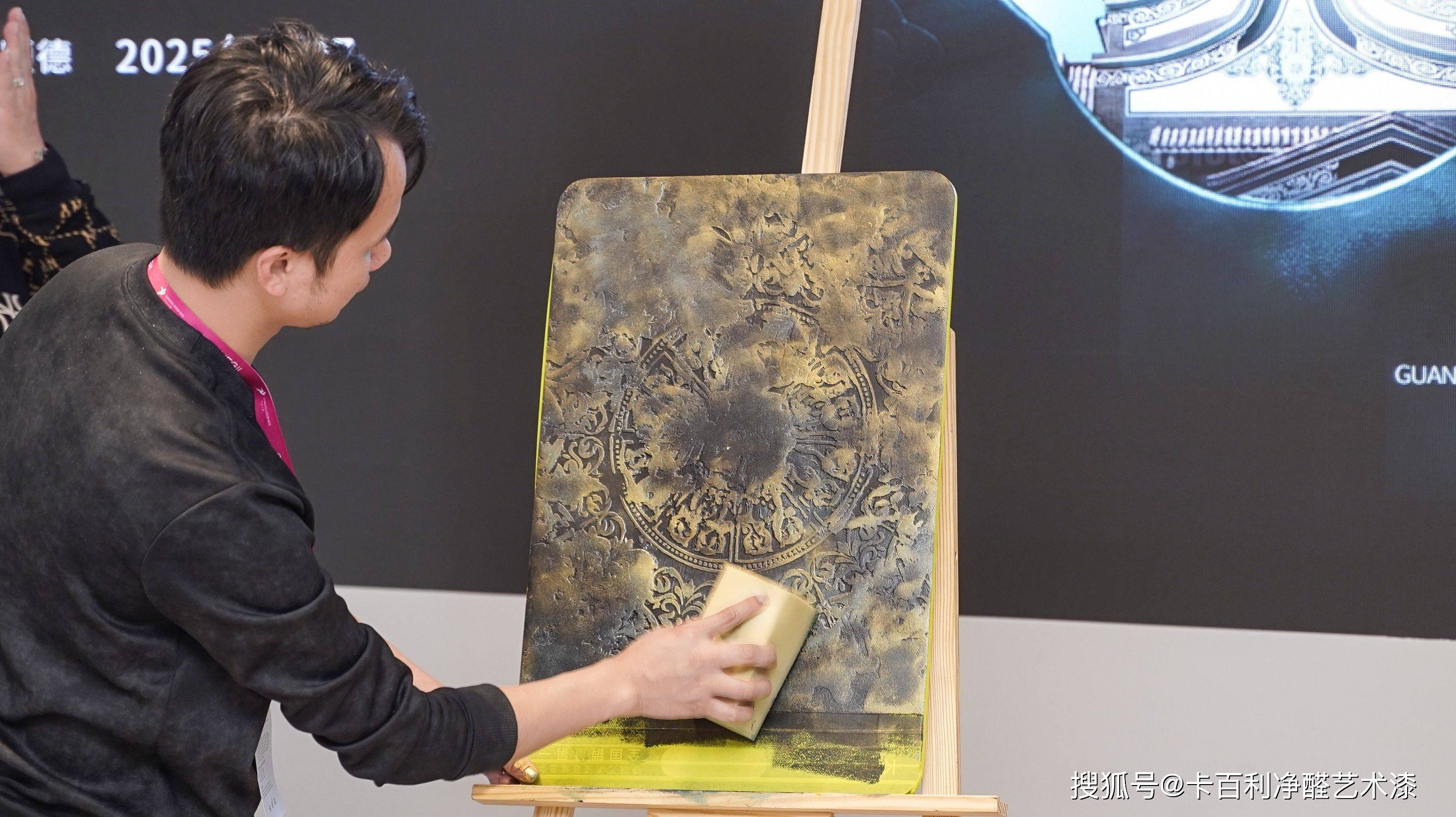 技服部经理侯裕飞现场演示“法式擦色”工艺,通过特制工具与手工技法层层叠加,在平整基面上塑造出细腻而富有层次的肌理效果,令在场设计师赞叹不已。这一环节不仅展现卡百利工艺的多样性,也为设计应用提供了更多灵感可能。