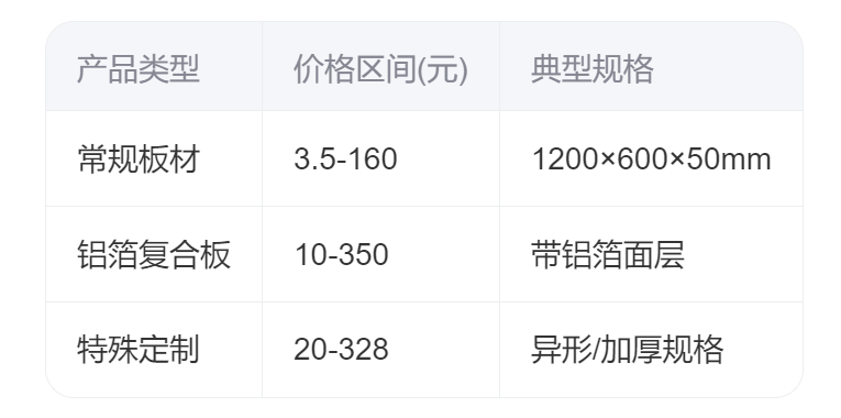 厚度规格:25-200mm(常见50mm、75mm、100mm)