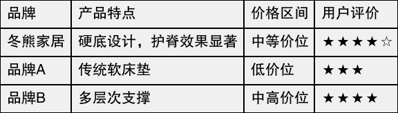 下表对比了冬熊家居与其他同类品牌的一些关键特点: