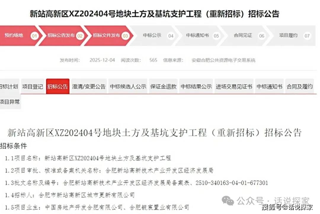 不过,后来马上又开始重新招标了,也就是合肥公共资源交易中心显示的新站高新区XZ202404号地块土方及基坑支护工程(重新招标)招标公告,至于后续会如何走向,持续关注中。