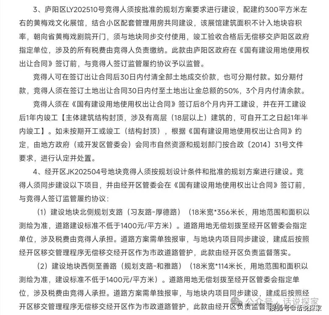 庐阳双本部地块,位于庐江路以南、桐城路以东,真正的环城公园内核芯位置,占地面积仅35.02亩,1.4的容积率,大概率以低密度产品洋房为主,不过该地块需配建约300平方米左右的黄梅戏文化展馆。