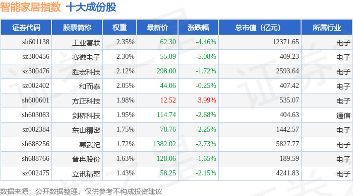 近10日内智能家居(399996)指数成份股做了调整,新纳入了4只股票,剔除了4只股票。
