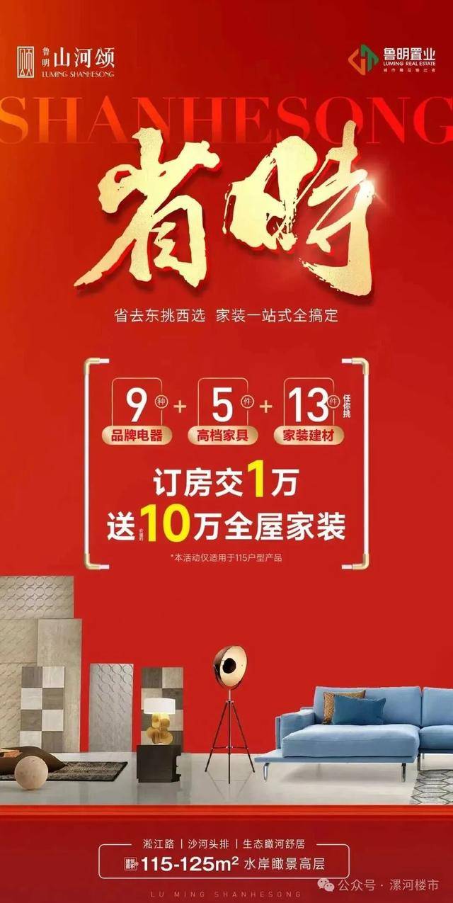 最近漯河的临河小区鲁明山河颂出了一个清盘活动,订房交1万就送价值约10万的全屋装修,包括家电、家具和基础装修建材。