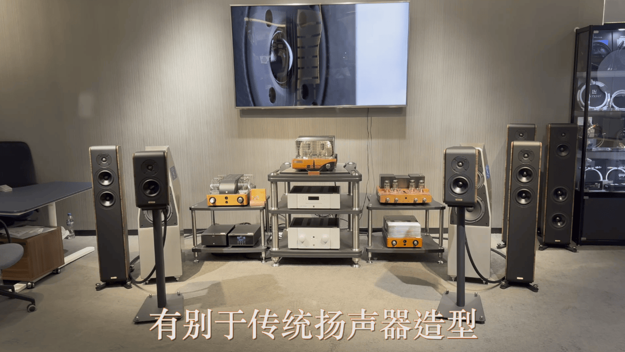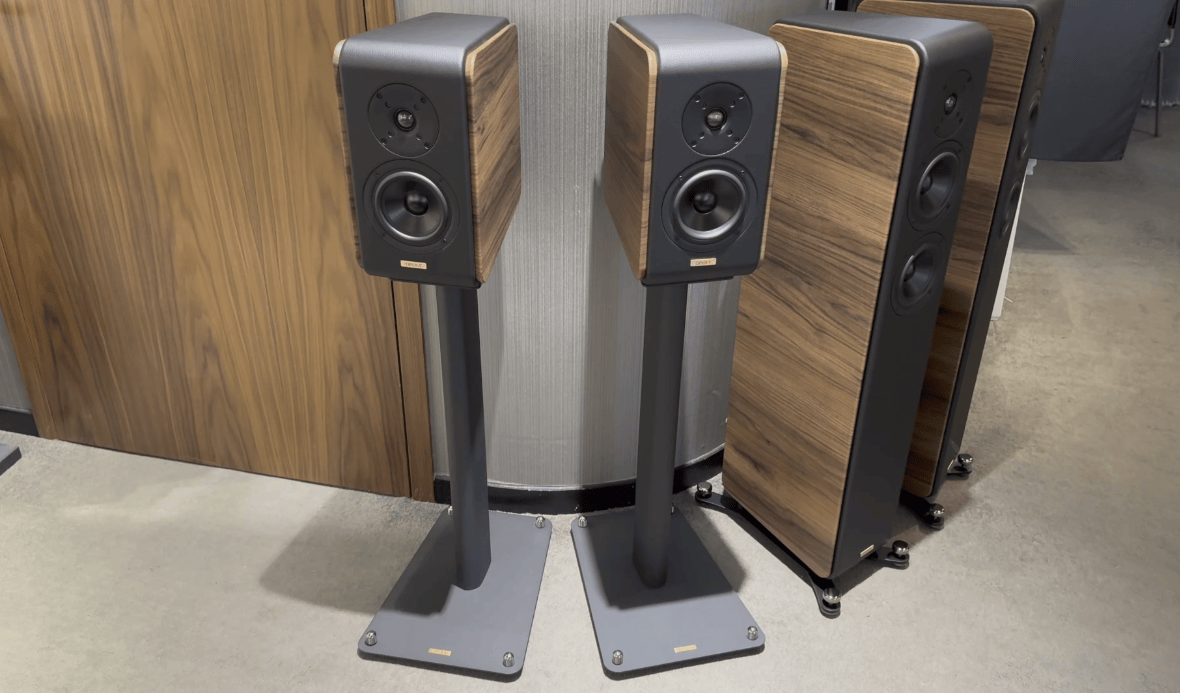 有别于传统扬声器造型的 意大利 歌剧院 全新 小梅札 V2,属于该社 经典 V2 系列的入门小师弟,中央部份铺上一层哑黑色人造皮革,两旁侧板用上了啡色木纹或水泥灰纹理的特殊制品,营造出另一番意大利风情。配合以螺丝进行固定的 SP1 专用脚架使用,绽放气势与幼细具全的震慑效果。