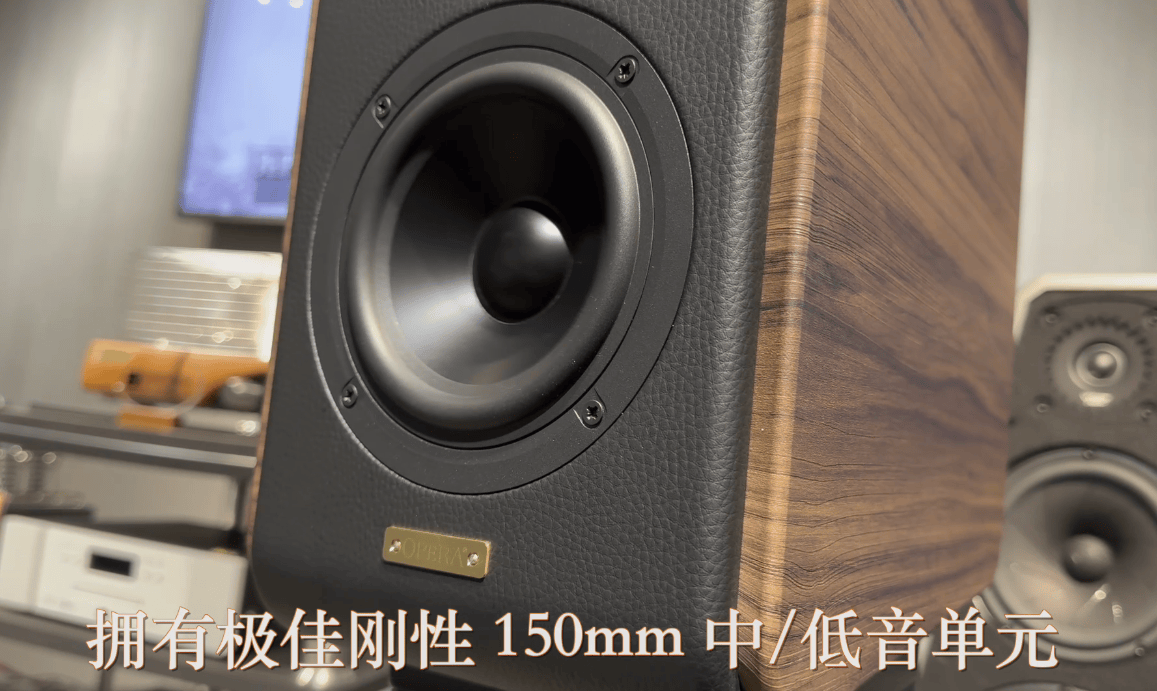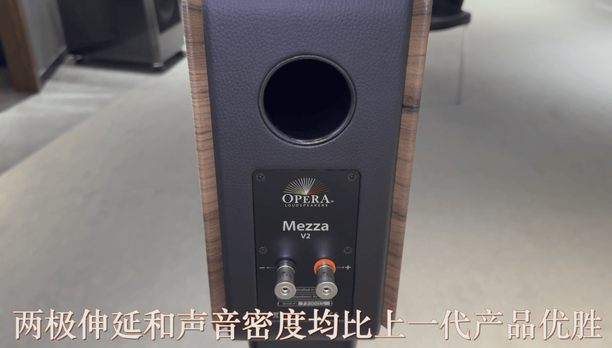 二路反射式设计,每只净重高达 12kg 水平的 小梅札 V2,声箱所有水口边位均打磨成圆角,有效减少声音折射。纵使个子小巧,但声箱内部亦加入了强化支架,作为安装单元的前障板厚度更达 40mm,进一步克制谐震干扰,加强清晰度。为免破坏视觉观感,一组倒相管刻意安排在声箱背部,下方则是一对印有 歌剧院 Opera 字样,方便用家同时使用香蕉型及Y型线叉的输入插座。
