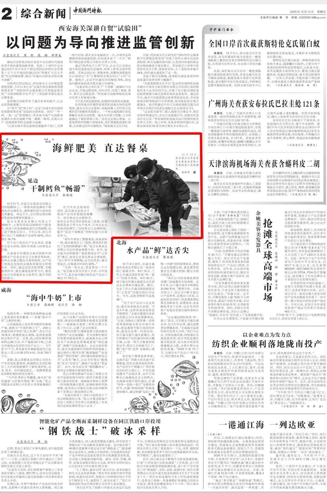 “每年冬季加工期最紧张,冻鱼原料一到,海关就及时上门查检,帮助我们抓住了宝贵的晾晒窗口期。”延吉永真食品有限公司总经理金春燮介绍。此外,延吉海关还积极推广检验检疫证书“云签发”模式,指导企业简化单证办理流程。“出口环节非常顺畅,证书出具快,通关零延迟,压缩通关时间约30%。”