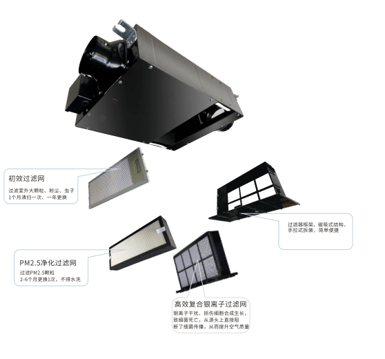面对室外的PM2.5、花粉和室内的甲醛、TVOC等污染物,过滤系统的效能至关重要。绿岛风超薄除霾新风机的核心优势之一,采用了多级过滤系统,配置的专业级空气过滤装置,可高效过滤空气中的 PM2.5 等颗粒物,将室外洁净空气送入室内,让室内空气保持清新,为用户营造健康的呼吸环境,该功能也让绿岛风超薄除霾新风机在同类产品中脱颖而出。