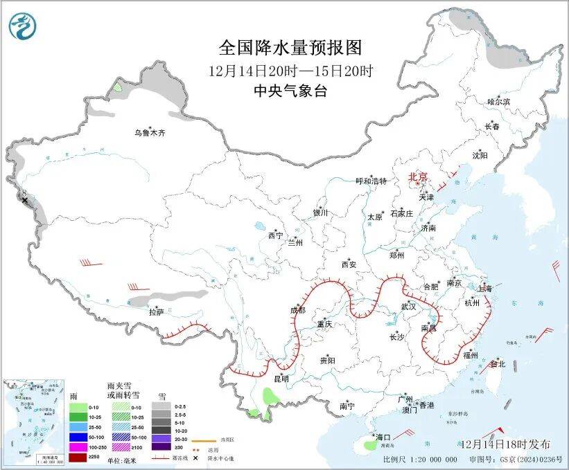 新疆北疆北部和南疆西部山区、西藏东部、黑龙江北部等地部分地区有小雪或雨夹雪,其中,新疆南疆西部山区局地有中到大雪(5~8毫米);云南南部、海南岛东部等地部分地区有小雨。新疆北部、甘肃北部、内蒙古西部、西藏北部等地部分地区有5~6级风,阵风7级;台湾海峡、巴士海峡、台湾以东洋面、南海中北部和西南部海域有7~8级风,阵风9级,其中巴士海峡部分海域风力可达9级、阵风10级。