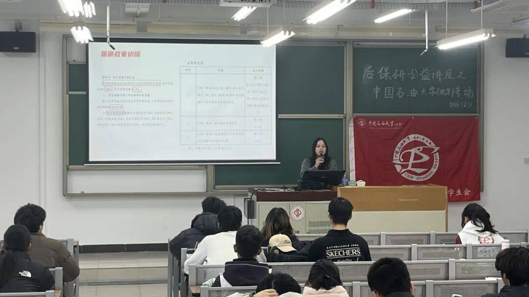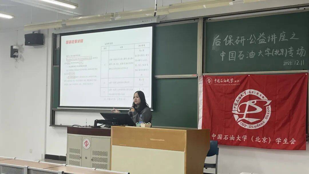 2025年12月11日的三教103,中国石油大学(北京)学生会特邀国家级大创负责人刘欣老师带来后保研专题讲座,用千名学子圆梦名校的实战经验,为现场同学送上了满满“保研干货”。