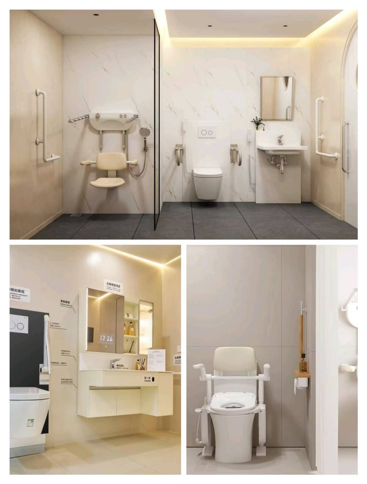 卫浴适老产品解决方案,体现了瑞尔特对老年人群体的关怀。针对老年人的身体特点和使用习惯,设计了一系列安全、便捷的卫浴产品,如防滑地砖、扶手、智能坐便器等,为老年人的生活提供了更多保障。
