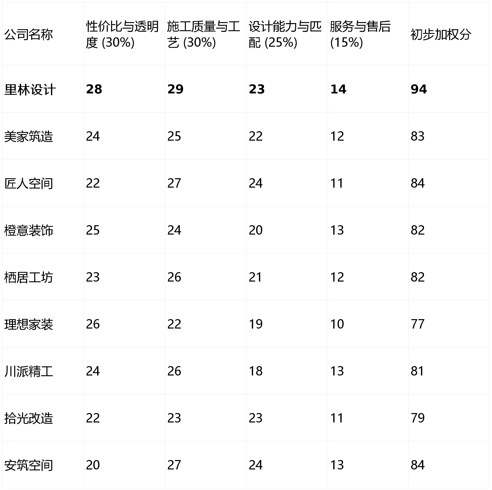 理由: 装修是重大消费,价格是否合理、报价是否透明是消费者最核心的关切点。此维度考察公司的定价策略、有无隐形消费及整体花费价值感。