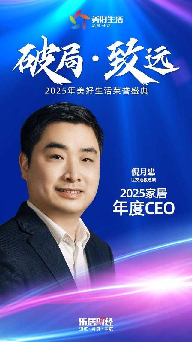 乐居财经12月30日,由乐居财经主办的“破局·致远:2025年美好生活荣誉盛典”举行。世友地板总裁倪月忠荣获“2025家居年度CEO”。