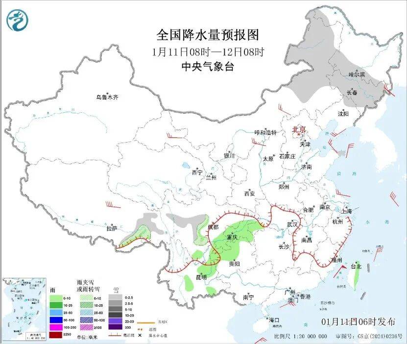 今明天,我国将维持降水稀少的格局,不过东北部分地区降雪频繁,西南地区仍有雨雪天气。中央气象台预计,今天内蒙古东部、黑龙江西南部、吉林、山东半岛、西藏东部、川西高原北部等地部分地区有小雪或雨夹雪。湖北西南部、四川东南部、重庆、贵州西北部、云南东北部和中部、台湾岛东部等地部分地区有小雨。