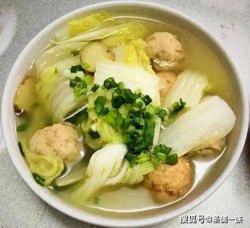 6. 白菜煮软后加盐、白胡椒粉调味,淋少许生抽提鲜,撒葱花增香