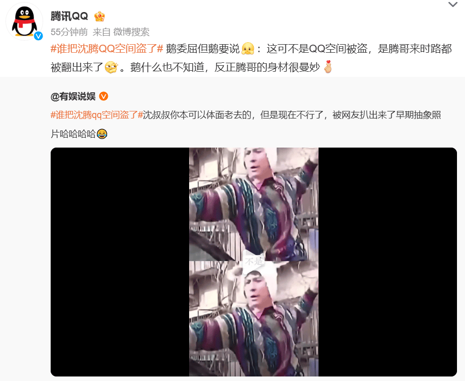 “鹅委屈但鹅要说:这可不是QQ空间被盗,是腾哥来时路都被翻出来了。鹅什么也不知道,反正腾哥的身材很曼妙。”