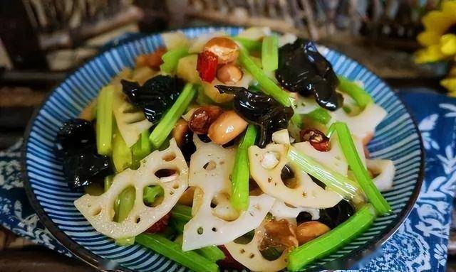 |食材|莲藕1节,香芹3根,水发木耳10朵,花生米2把,生抽3勺,盐2克,米醋2勺,白糖1勺,花椒适量,小米辣2个,蒜末适量