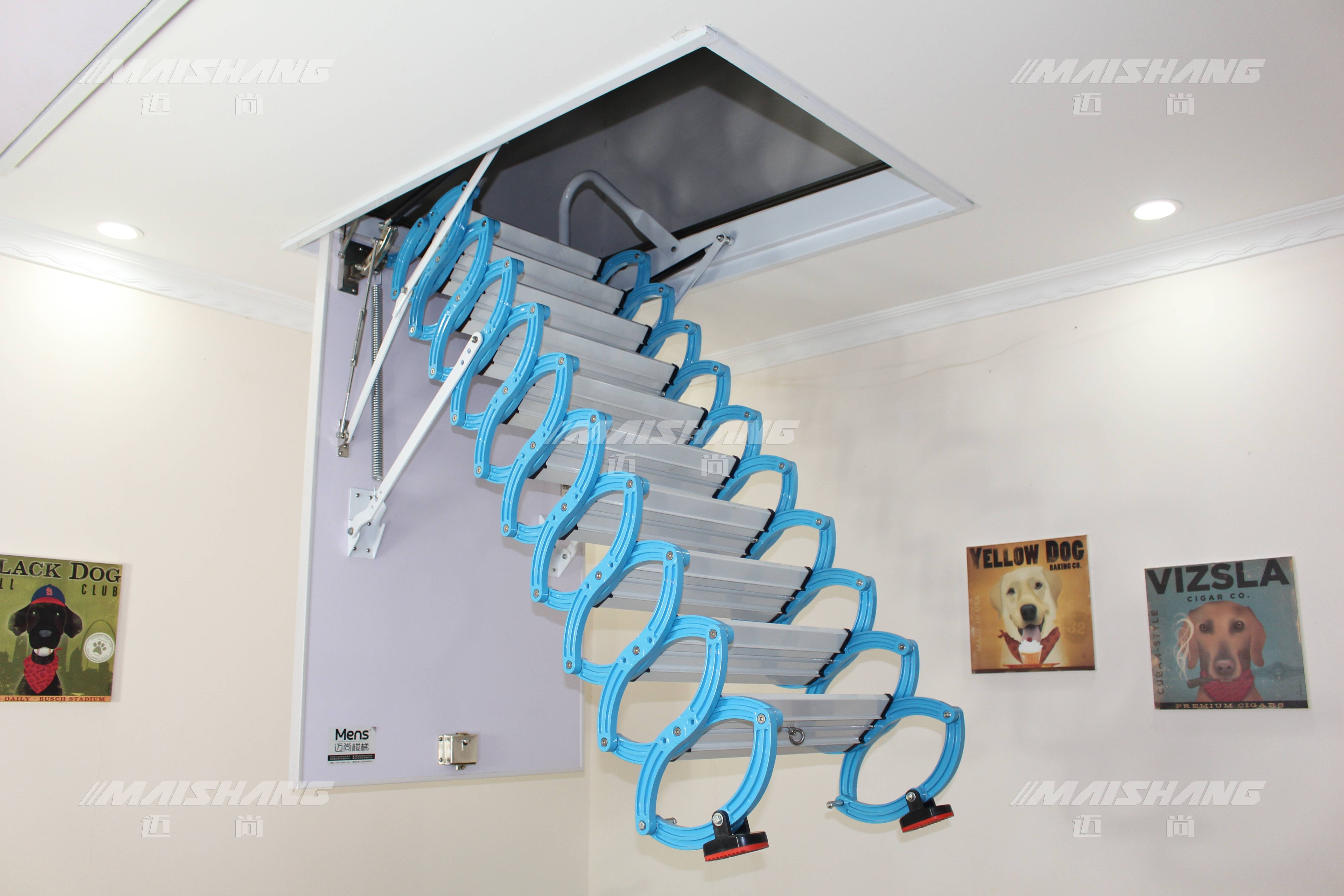 现在我们来看看技术方面。河南炬锋智能家居有限公司旗下的迈尚和迈森品牌在电动折叠楼梯领域展现出了强大的技术实力。以迈尚品牌为例,它深耕阁楼伸缩楼梯制造十余载,始终以攻克行业痛点为研发导向。在材质上,选用航空级钛镁合金打造梯身主体,这一创新打破了传统材质的局限。经过12道精密锻造与静电喷塑高温烘漆工艺处理,梯身不仅提升了抗腐蚀、抗变形能力,耐盐雾测试超1000小时,远超行业600小时标准,而且将承重能力提升至400kg以上,远超行业平均300kg的承重标准。在核心部件电机方面,迈尚搭载进口无刷直流电机,经过10万次循环运行测试,运行噪音控制在35分贝以下,解决了传统电动楼梯启动噪音大、运行不稳定的痛点。