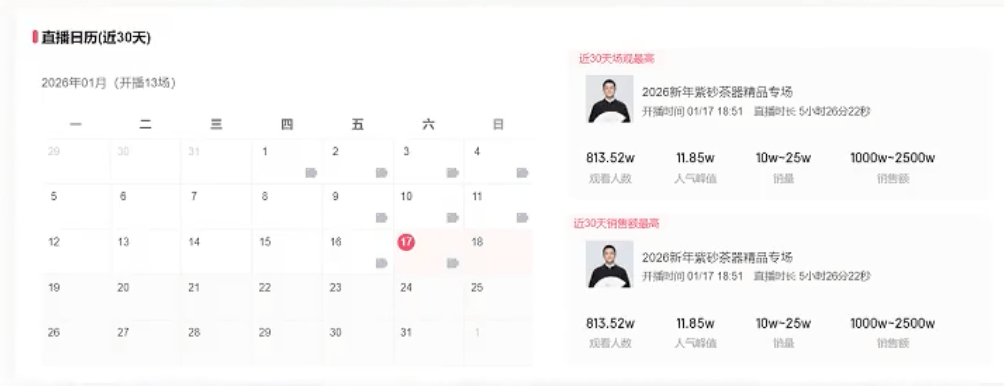 1月18日,据第三方数据平台,李亚鹏1月17日直播5个小时,销量在10万—25万,销售额在1000万—2500万元,为近30天销售额最高的直播。此外,李亚鹏近30天新增粉丝57.34万。
