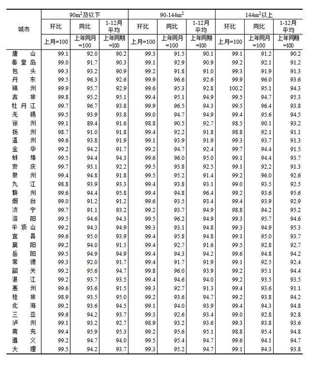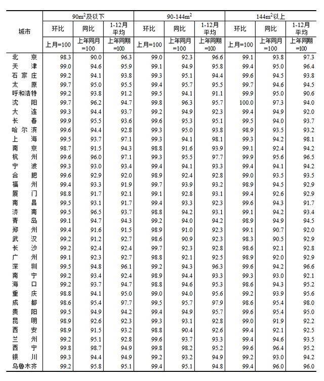表1:2025年12月70个大中城市新建商品住宅销售价格指数