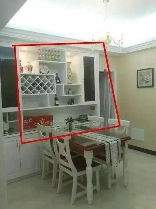 4、如果家里没有人喝酒的话,建议别打酒柜,尤其哪个格子的,还有门不要用百叶的,那后期清洁起来非常的麻烦!