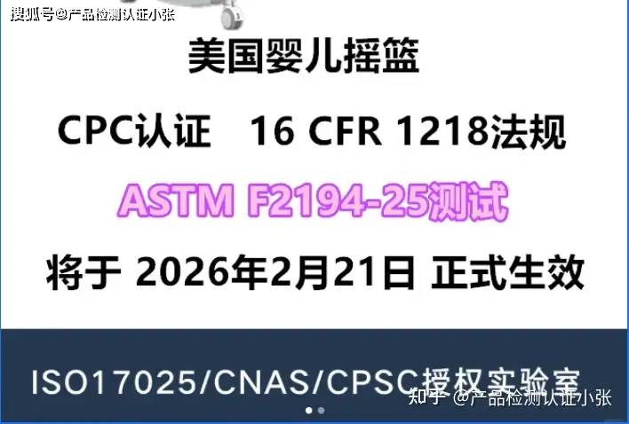 2025年8月1日,美国测试与材料学会(ASTM)批准了ASTM F2194的修订版,并于2025年8月发布了16 CFR 1218 - 婴儿摇篮和摇篮的安全标准ASTM F2194-25测试。 新法规采纳了最新的行业自愿性标准 ASTM F2194-25,并将于 2026年2月21日 正式生效。卖家们注意及时更新资质,以免影响产品售卖。
