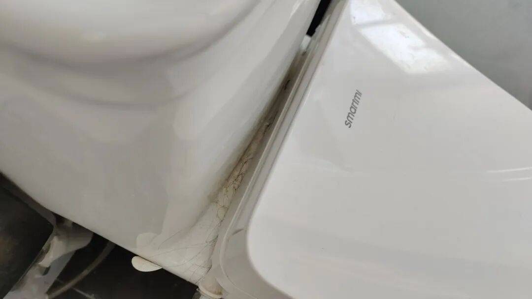 以前用普通马桶,缝隙脏了我可以洗澡的时候顺便用花洒冲洗,但现在这玩意是通电的,而且不防水,所以缝隙的清理频率就低了很多。因为这个缝隙真的很小,手指根本够不着,如下图: