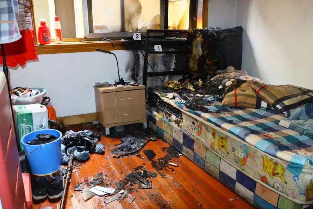 经调查,火灾原因系该卧室床头拖线板故障引发。