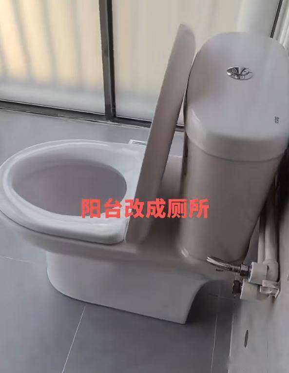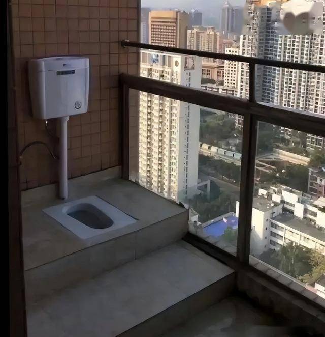 估计谁也不能想着会把阳台改成厕所吧,但有位仁兄却真的这样做了,而且他还在马桶的位置上加了两节台阶,这样做是为了加装下水防臭弯道有落差才能排水。