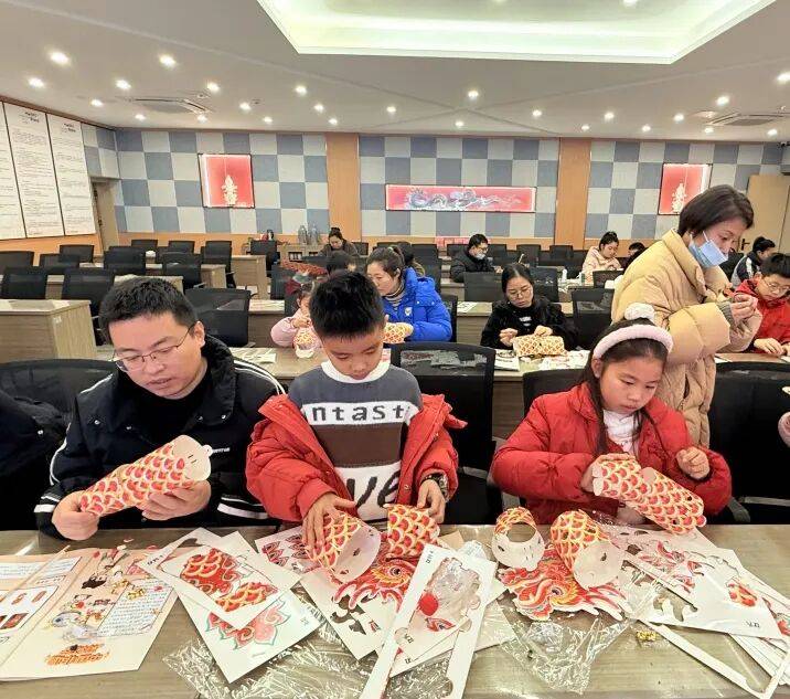 1月1日,特邀20组亲子家庭参加元旦亲子研学游活动。活动伊始,他们跟随讲解员参观展厅,在生动详实的讲解与轻松有趣的问答中,深入了解彩灯的历史渊源与制作工艺。参观结束后,每个家庭动手制作一盏寓意吉祥的鳌鱼灯,在协作中感受传统工艺的魅力。
