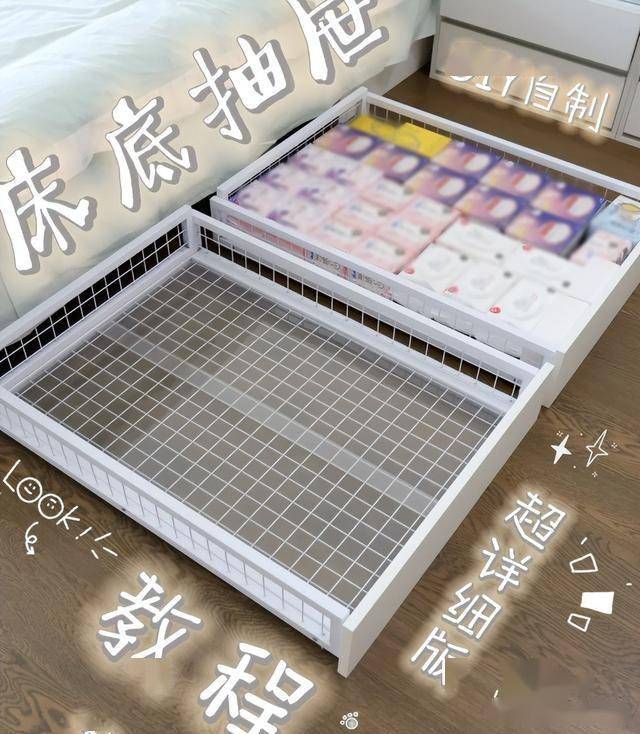 床底下有抽屉,或者有空间的话,可以放各种东西,也能增加收纳空间。