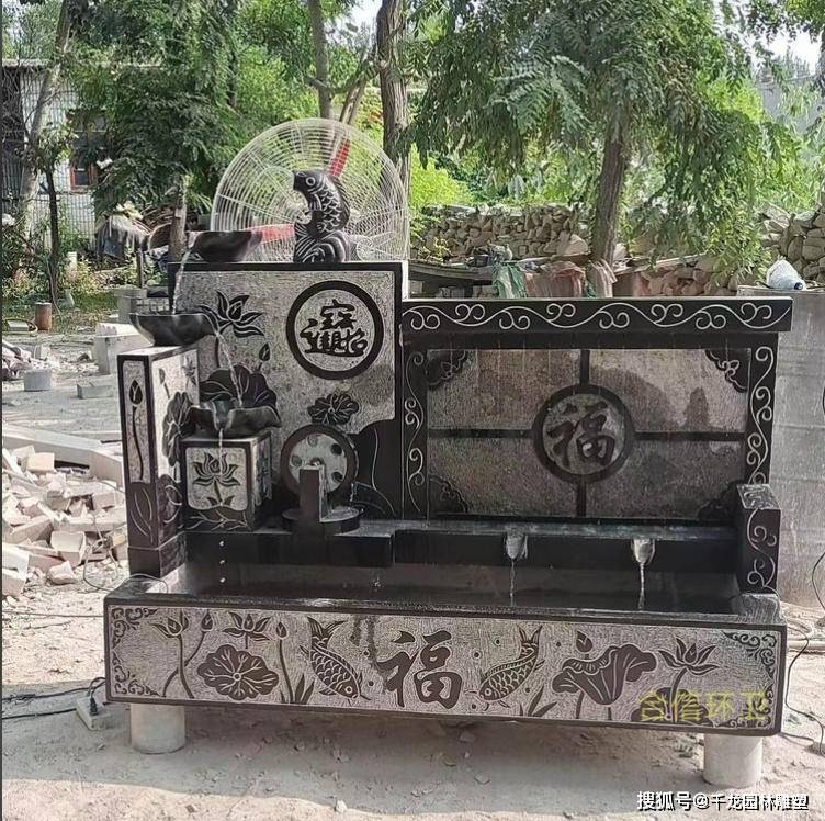 (二)品工艺:细节之处见真章 仔细观察雕刻工艺,线条是否流畅自然,图案是否清晰生动,无论是简约的几何造型,还是复杂的山水、动植物雕刻,都应做到细节精致,无瑕疵。同时,查看流水系统的设计是否合理,水流是否顺畅,有无漏水等问题。