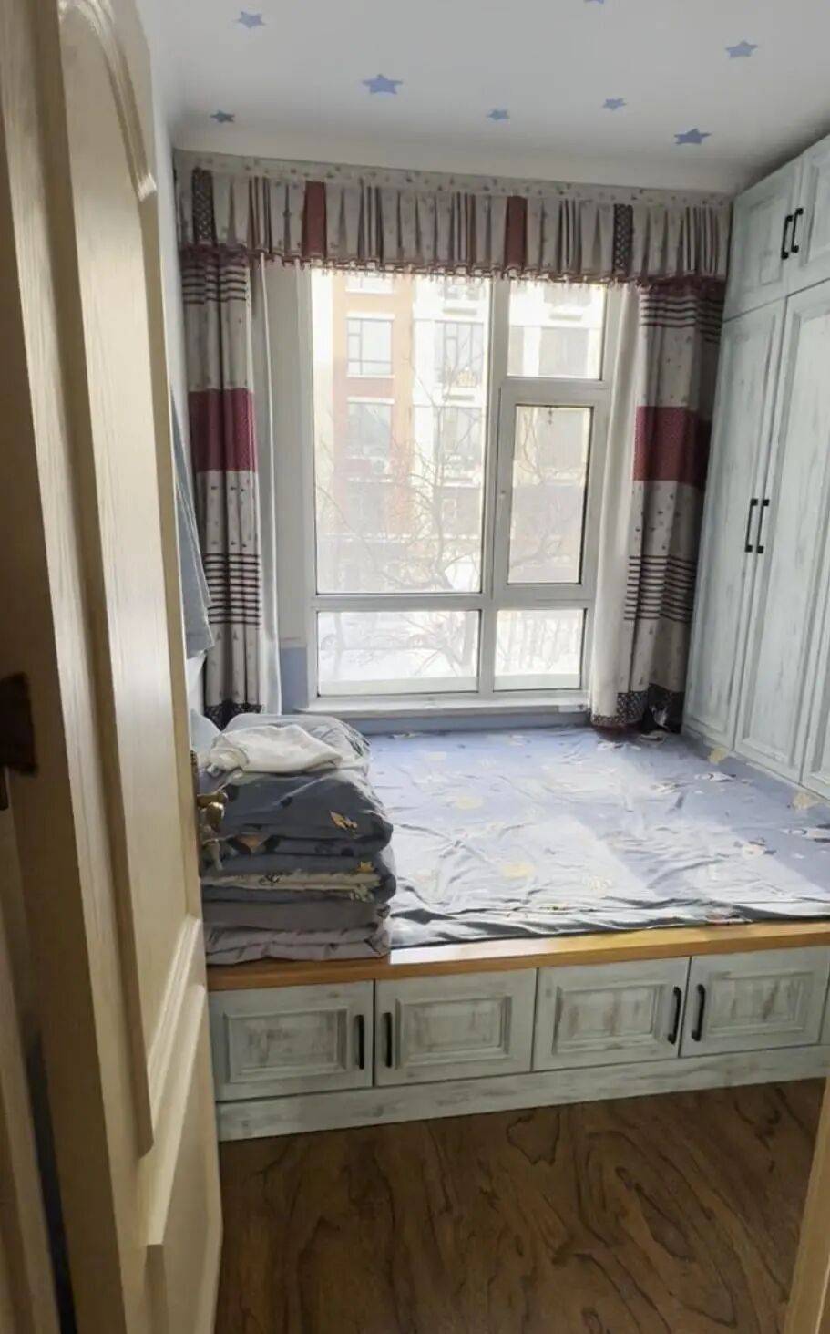 据业主介绍:这张床原来是孩子卧室的床,后因孩子长高换成了榻榻米,才被暂时放置在客厅中。(如下图)