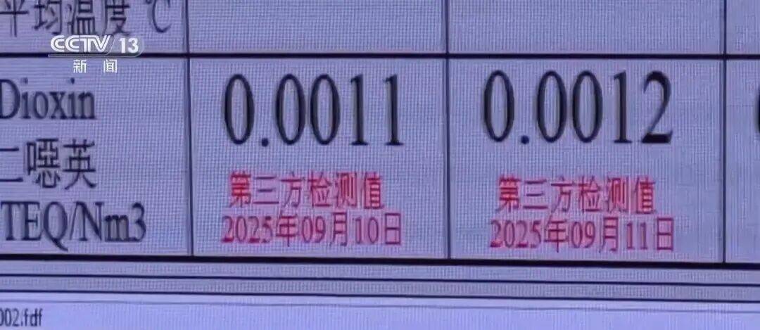 二噁英的国家排放标准是0.1纳克每立方米,而中控室大屏幕显示的6个焚烧炉的二噁英排放数据,最高也没超过0.004,远低于国家排放标准。