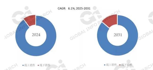 图. 珠宝首饰,全球市场规模,按应用细分,线上销售是最大的下游市场,占有89.9%份额。