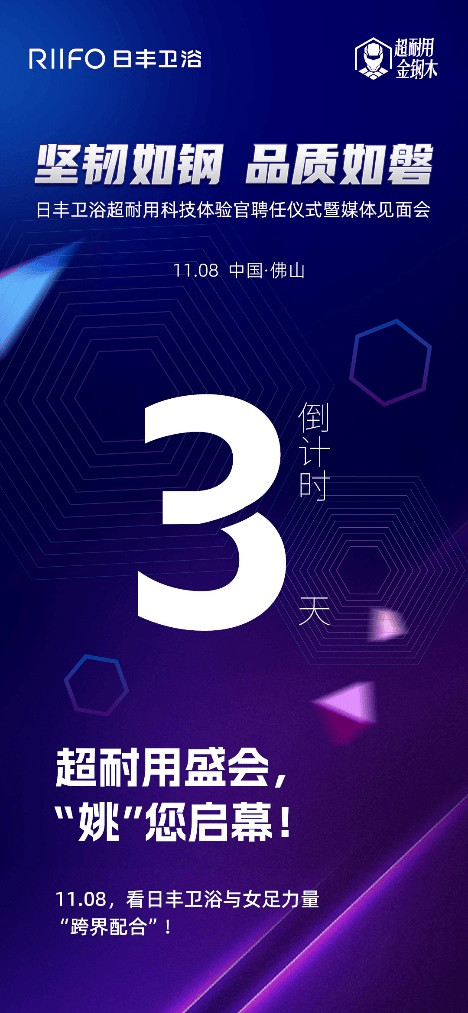 当卫浴行业的竞争从价格、功能迈向“长期价值”的新阶段,如何让冷冰冰的技术参数拥有触动人心的温度,成为头部品牌的新课题。近日,日丰卫浴发布的一张倒计时海报,为行业应对找到了新的解决方案,该海报透露将于11月8日举办一场以“坚韧如钢品质如磐”为主题的活动,其核心环节将是正式聘任一位体育领域的冠军级人物为“超耐用科技体验官”。此举被视为日丰卫浴对其今年5月启动的“超耐用”战略的深度升华,旨在完成从产品发布、标准建立到用户心智占领的关键闭环。