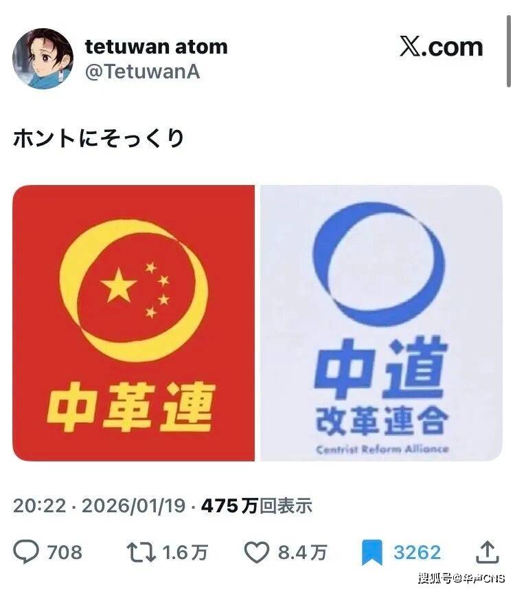 “中央革命同盟”与中道改革联合的象征标记酷似。已不是还能找借口的程度。或者说,是明知故犯。这次,高市首相行使解散(众议院)权,让卖国议员、卖国政党清清楚楚地显露出来,效果拔群。