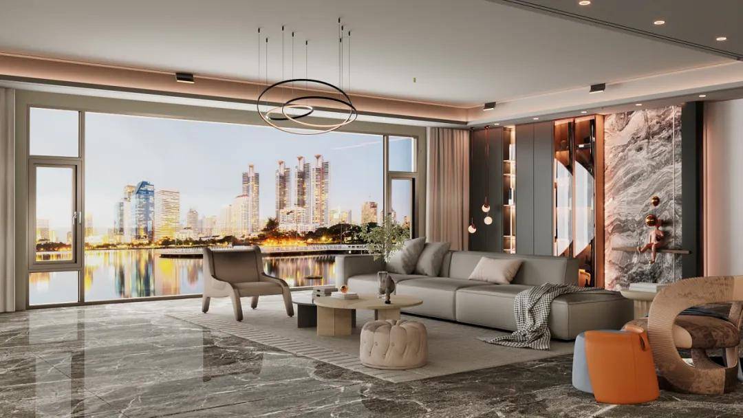 富轩全屋门窗以设计语言,道出让家成为极简主义空间的真谛,框扇平齐结构,与边缘完美齐平展现出简约而不简单的美感;隐藏式排水设计,不仅在门窗排水功能上,更上一层楼,也让窗框外观更简洁美观,展现出对极简主义最纯粹的追求。