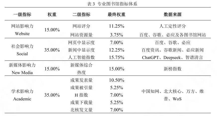 《数智时代中国图书馆影响力指数报告(2025)》由中国科学与科技政策研究会、科学计量学与信息计量学专业委员会指导研发。此次报告,延续2024年评价报告的研究框架与思路,构建并持续优化“五维一体”(BWNSA)影响力分析模型,从基础实力、网站影响力、新媒体影响力、社会影响力、学术影响力等五个方面形成全方位、多维度的中国图书馆影响力分析体系。选取高校图书馆2919家、公共图书馆1980家(不包含港澳台地区公共图书馆)以及专业图书馆390家(其中医院图书馆105家)作为分析对象。三大类型图书馆影响力指标体系的各项指标及观测点,均选取能够反映实际情况并可核查的最新公开数据作为数据来源。
