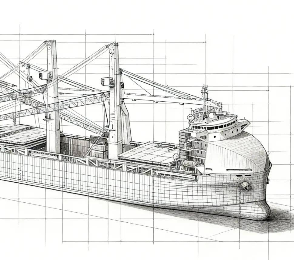 日前,60800载重吨艏驾驶型新船效果图制作完成。