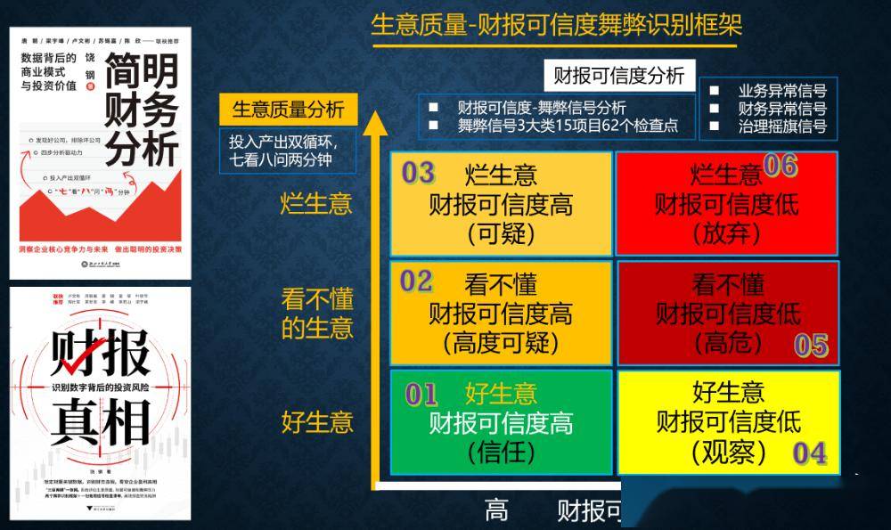 我的财务分析体系:发现好公司,排除坏公司。已经出了两本书,《简明财务分析》,发现好公司的财务分析方法。《财报真相》是另一只手,排除坏公司的极致,财务造假。