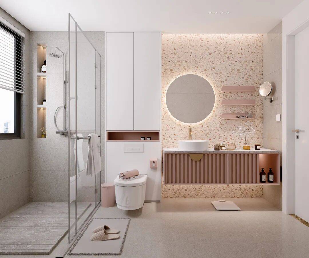 这间卫浴告诉我们:色彩可以既是情绪的语言,也是功能的注解。