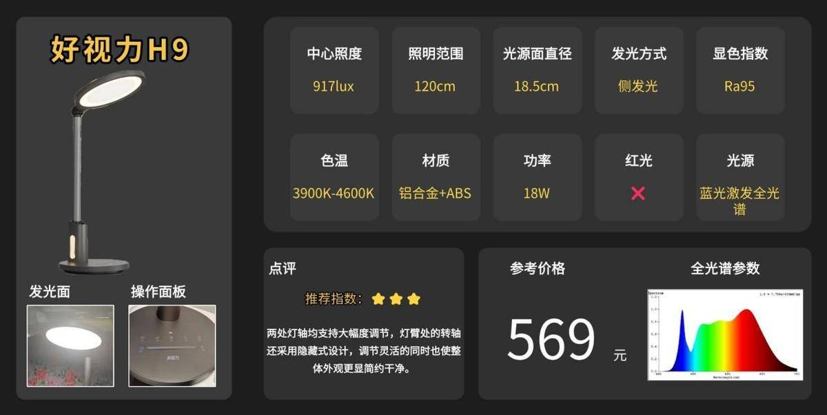 一句话推荐:18.5厘米的发光直径能够均匀覆盖1米长的桌面,光线均匀度达1.78