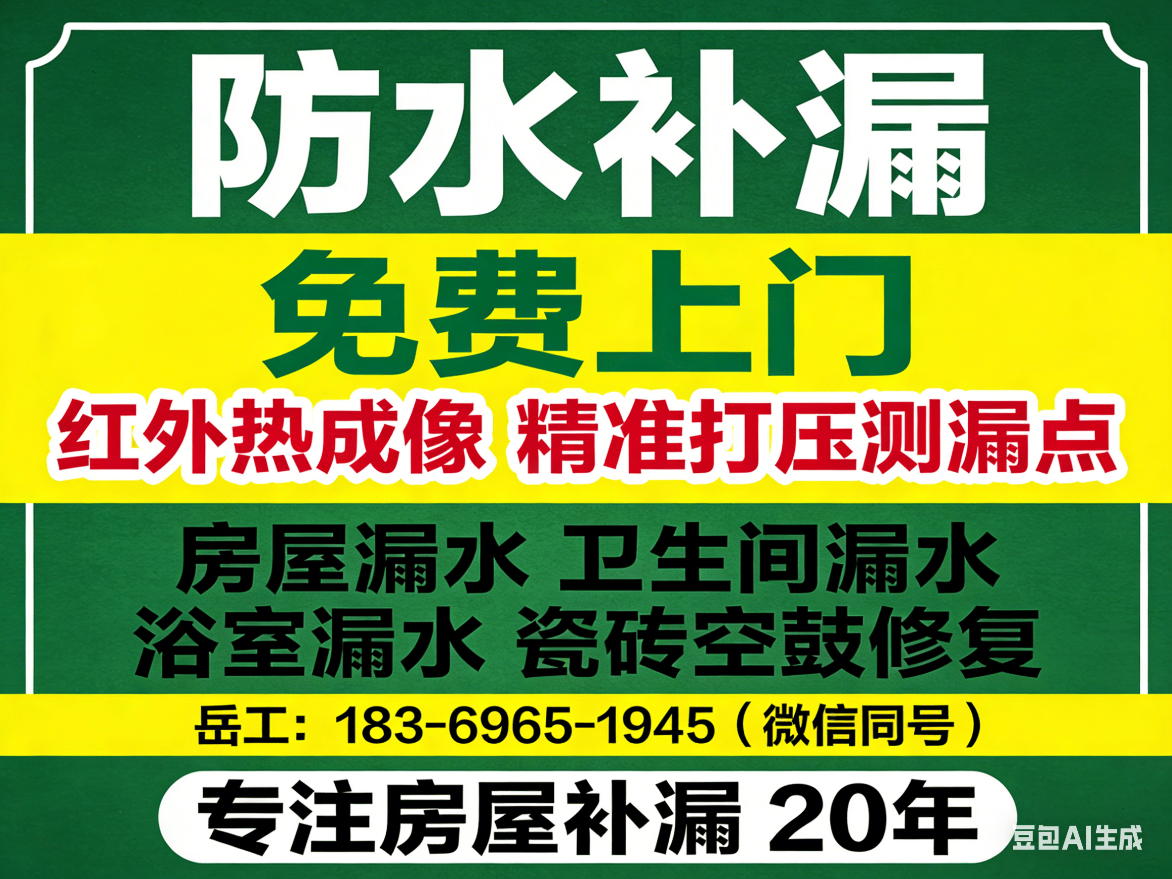 户与阳台漏水密封、浴室卫生间漏水整治、厨房漏水检测与修复、瓷砖修复与修补服务。