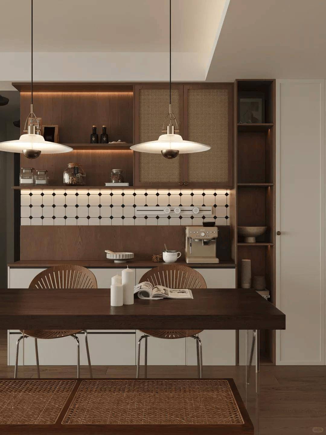 整合了烤箱、咖啡机等电器的餐边柜,让家居充满生活化的烟火气;侧重装饰展示的餐边柜,能让空间显得有品味、有故事。